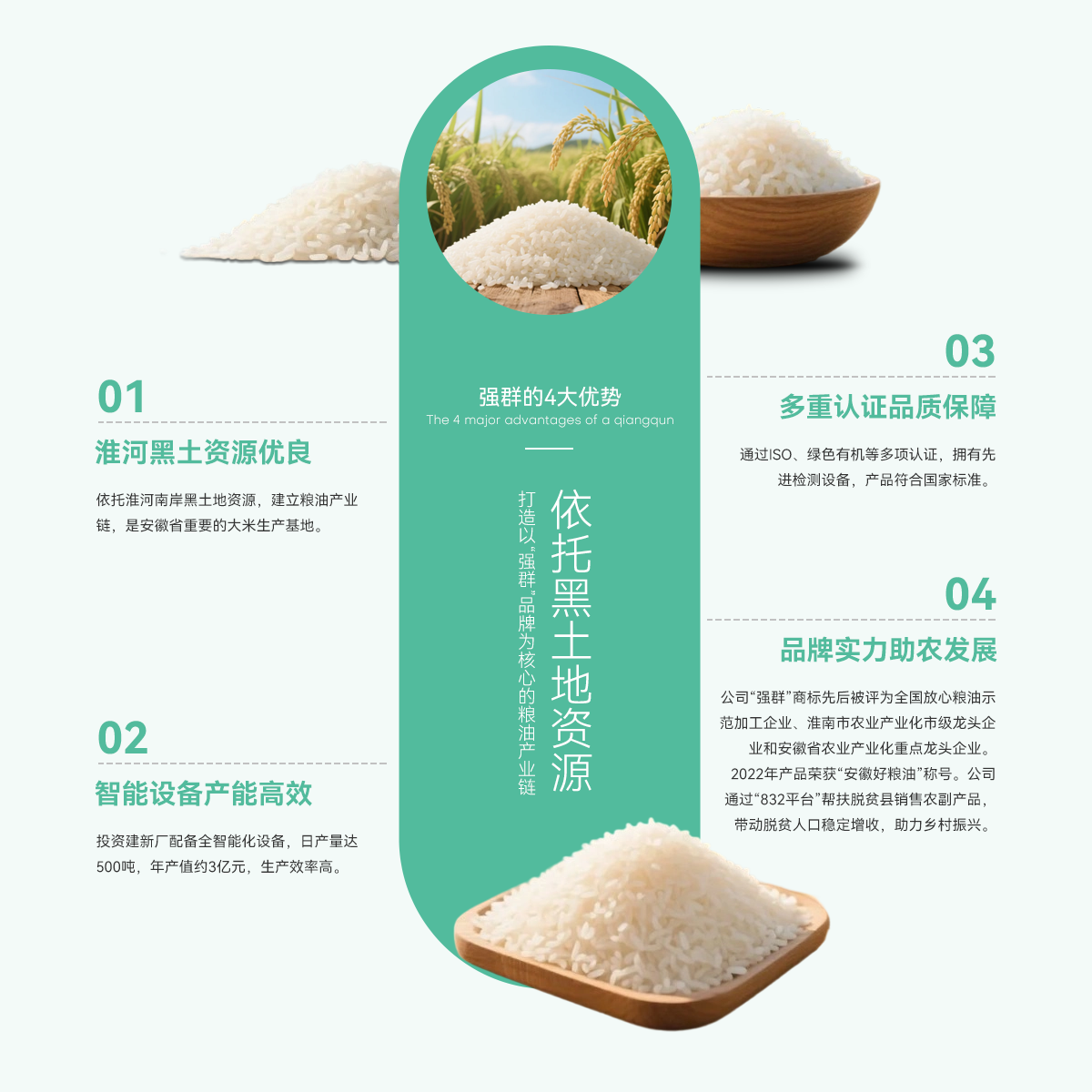 - 壽縣強群糧油貿易有限公司成立于2011年,座落在淮南市壽縣澗溝鎮(zhèn),是一家集種植、加工、收儲、銷售于一體、以生產(chǎn)中、高檔質優(yōu)、特色類大米為主的綜合性企業(yè)。公司依托準河南岸的黑土地資源,打造以“強群”品牌為核心的糧油產(chǎn)業(yè)鏈,是安徽省重要的大米生產(chǎn)基地。 為響應市場增長需求,公司2021年啟動二期擴產(chǎn)工程,其中新生產(chǎn)廠區(qū)建設投入資金近億元,建設現(xiàn)代化新生產(chǎn)線,總占地面積約4000...